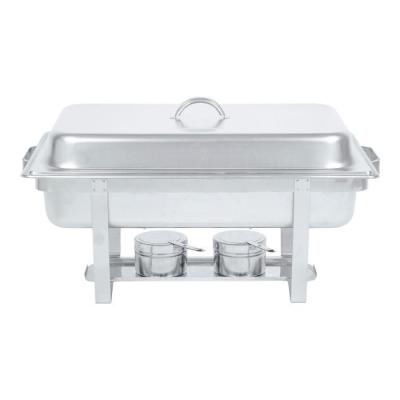 Het is de bedoeling dat in de Chafing dish water gedaan wordt dat verwarmd wordt door de brandpasta. Door de gastronormbakken die de gerechten bevatten in het warme water te leggen zal de inhoud warm gehouden worden. De Gastronormbakken, aparte deksels en Brandpasta zijn niet inbegrepen. Deze Chafing dish dient afgewassen geretourneerd te worden, anders wordt er 15 % van het verhuurbedrag extra aangerekend.